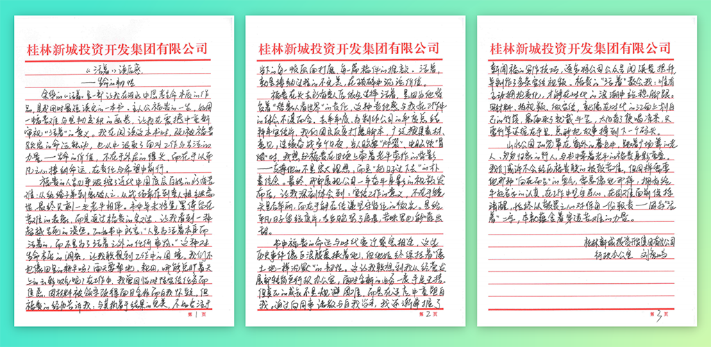 本次活動吸引了廣大員工踴躍參與,共收集作品30余份,他們以飽滿的熱情和高度的責任感,圍繞讀書主題,結合自身豐富的閱讀經歷與深刻感悟,撰寫出了一篇篇亮點紛呈的文章。這些作品或抒發(fā)對經典名著的熱愛,或分享閱讀帶來的成長與啟發(fā),充分展現了新城投集團員工積極向上、熱愛閱讀的精神風貌,讓整個公司都彌漫著濃郁的書香氣息。