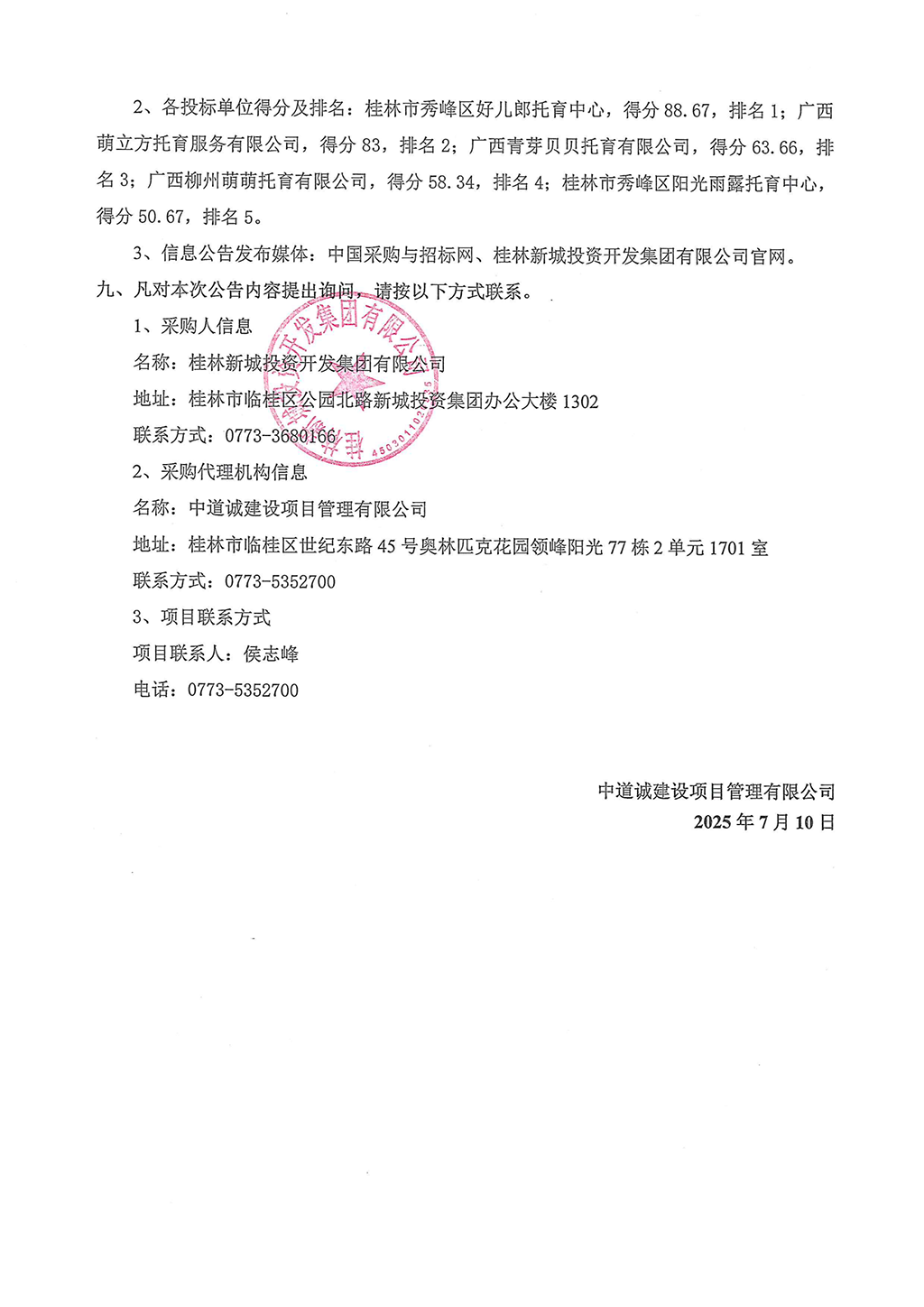 中道誠建設(shè)項(xiàng)目管理有限公司關(guān)于桂林宏謀普惠托育園運(yùn)營管理項(xiàng)目(重1)(ZDCJS2025-05-001)中標(biāo)(成交)結(jié)果公告