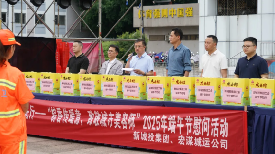 為深入踐行習(xí)近平總書記“以人民為中心”“勞動最光榮”的指導(dǎo)思想,切實把組織關(guān)懷送到基層勞動者心坎上,進(jìn)一步提升環(huán)衛(wèi)職工隊伍的職業(yè)認(rèn)同感和幸福感,2025年5月29日端午節(jié)前夕,新城投集團(tuán)聯(lián)合宏謀城運公司在秀峰區(qū)中心廣場舉辦“粽香傳暖意,致敬城市美容師”端午節(jié)慰問活動。此次活動得到市城管委,秀峰區(qū)政府、城管局、環(huán)衛(wèi)站的大力支持與指導(dǎo)。市城管委黨組成員、副主任蔣毅出席活動。受新城投集團(tuán)黨委書記、董事長朱毅委托,黨委副書記、紀(jì)委書記、工會主席譚力源代表集團(tuán)黨委、領(lǐng)導(dǎo)班子及全體職工,向奮戰(zhàn)在環(huán)衛(wèi)一線的干部職工致以節(jié)日問候。