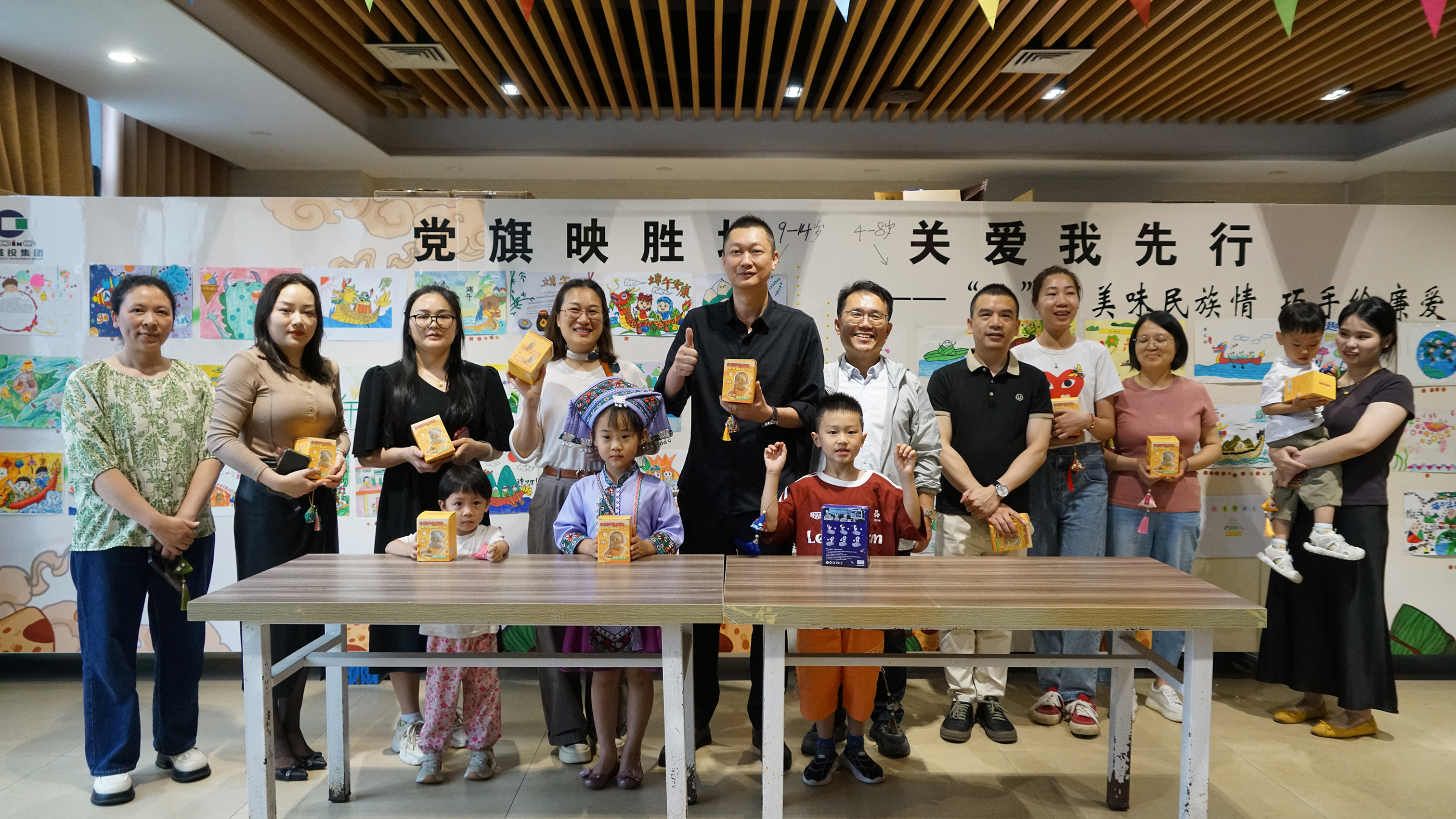 活動接近尾聲,小朋友們在“兒童節(jié)禮盒區(qū)”挑選盲盒禮品,驚喜連連。盲盒禮品中裝滿了各類童年回憶零食、民族文創(chuàng)產(chǎn)品等,每一份禮品都承載著集團(tuán)對孩子們的關(guān)愛與祝福。孩子們的臉上洋溢著幸福的笑容,這份特別的節(jié)日禮物將成為他們成長中的美好回憶。